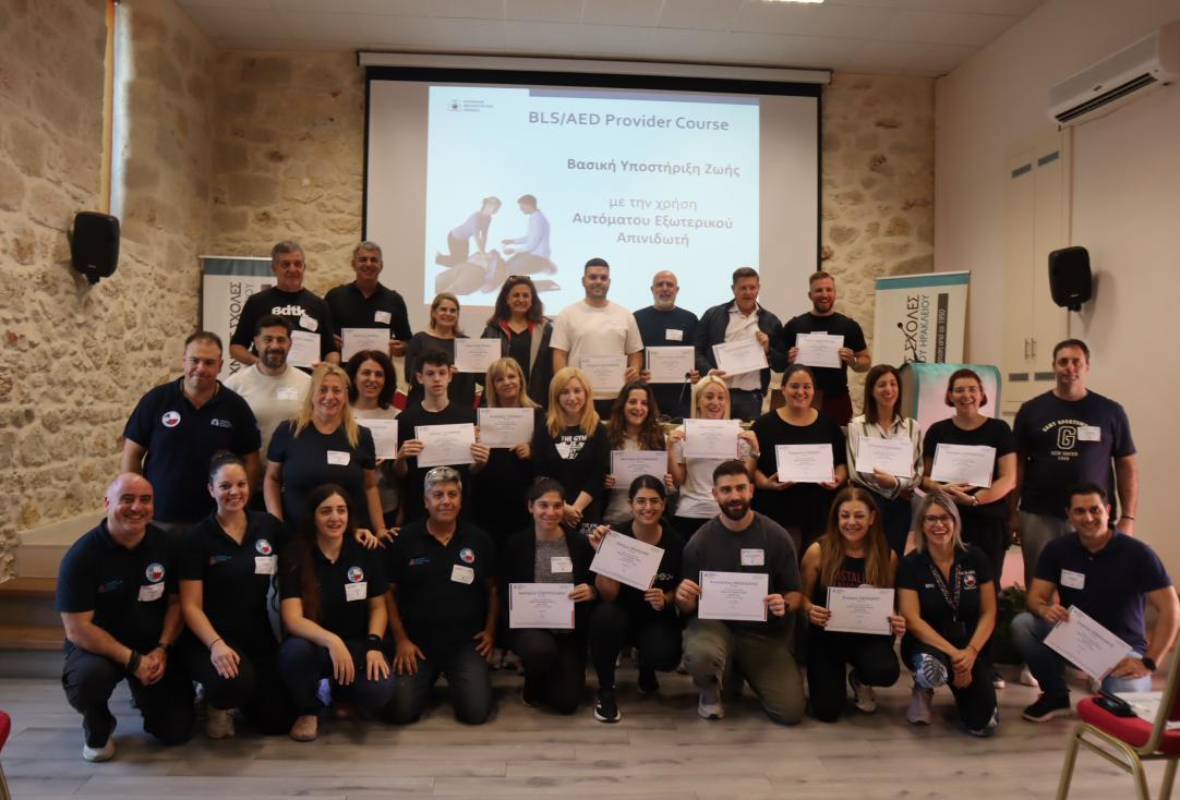 Οι συμμετέχοντες είχαν τη δυνατότητα να εκπαιδευτούν και να πιστοποιηθούν σε θεωρητικό και πρακτικό επίπεδο σε σωτήριες γνώσεις και δεξιότητες σχετικά με την εφαρμογή της Καρδιοπνευμονικής Αναζωογόνησης (ΚΑΡ.Π.Α.) και τη χρήση του Αυτόματου Εξωτερικού Απινιδωτή (Α.Ε.Α) σε περιπτώσεις καρδιακής ανακοπής, με βάση τις νέες κατευθυντήριες οδηγίες του Ευρωπαϊκού Συμβουλίου Αναζωογόνησης.
