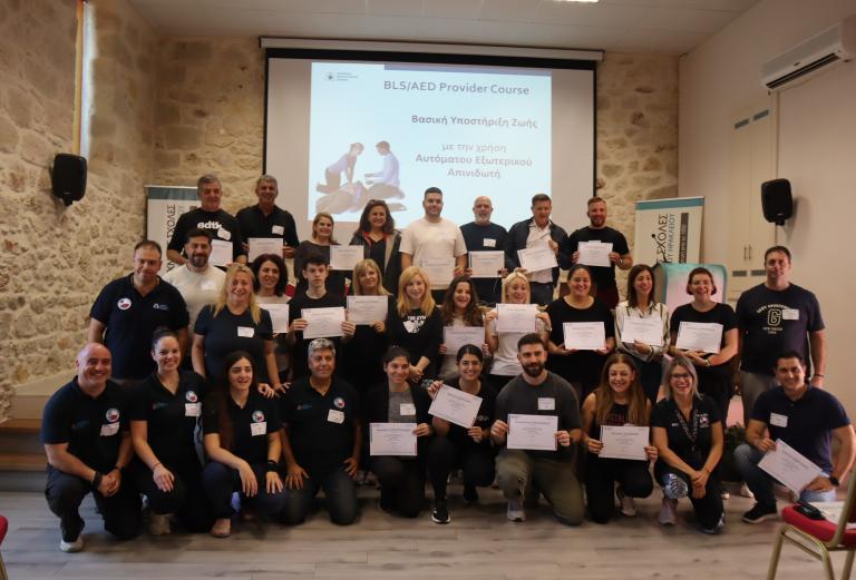Οι συμμετέχοντες είχαν τη δυνατότητα να εκπαιδευτούν και να πιστοποιηθούν σε θεωρητικό και πρακτικό επίπεδο σε σωτήριες γνώσεις και δεξιότητες σχετικά με την εφαρμογή της Καρδιοπνευμονικής Αναζωογόνησης (ΚΑΡ.Π.Α.) και τη χρήση του Αυτόματου Εξωτερικού Απινιδωτή (Α.Ε.Α) σε περιπτώσεις καρδιακής ανακοπής, με βάση τις νέες κατευθυντήριες οδηγίες του Ευρωπαϊκού Συμβουλίου Αναζωογόνησης.